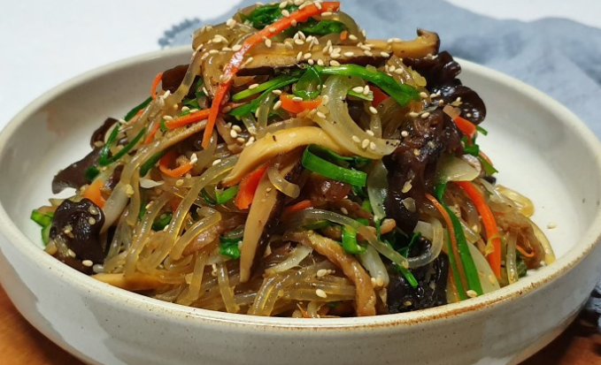 잡채는 다양한 채소와 당면을 활용하여 만든 전통 한국 요리 중 하나입니다. 고소하고 담백한 맛이 특징이며, 색감이 아름다워 샐러드로도 인기가 있습니다.