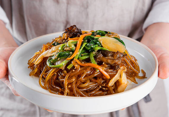 잡채를 서빙하는 방법은 다음과 같습니다: